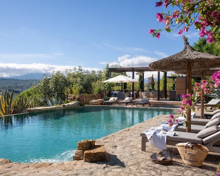- De villa heeft twee zwembaden - het kleinere (7.5 m x 5 m x 1.2 m) ligt op een hoger niveau met toegang van buitenaf en is verbonden met een slaapkamer. Het grotere (12 m x 6 m x 2,5 m) op het lagere niveau is een overloopzwembad met ongestoord uitzicht op de vallei en de bergen. Beide zwembaden worden verwarmd door zonnepanelen.