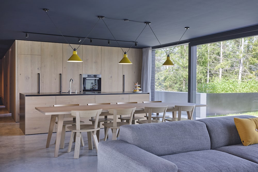 De ruime appartementen zijn allen uitgerust met een open leefruimte voorzien van een zithoek en een keuken met o.a. Miele apparatuur. Vanuit de woonkamer heeft u toegang tot de tuin en het terras aan de voorkant (voorzien van een eettafel en lounge stoelen) en tot een patio waar u volledig beschut kunt genieten van de gezonde buitenlucht. Elk appartement heeft 2-3 slaapkamers met tweepersoonsbedden en moderne badkamers met een inloopdouche. Appartement TWEE is het grootste appartement dat is uitgerust met een privé sauna. Appartement EEN heeft een lift die de keuken van de woning direct verbindt met de ondergrondse garage.