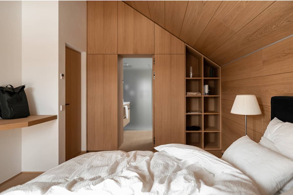 - Op de bovenste verdieping liggen twee slaapkamers met een tweepersoonsbed een een ensuite badkamers met ligbad, inloopdouche, dubbele wastafel en apart toilet. Beide slaapkamers hebben een balkon.