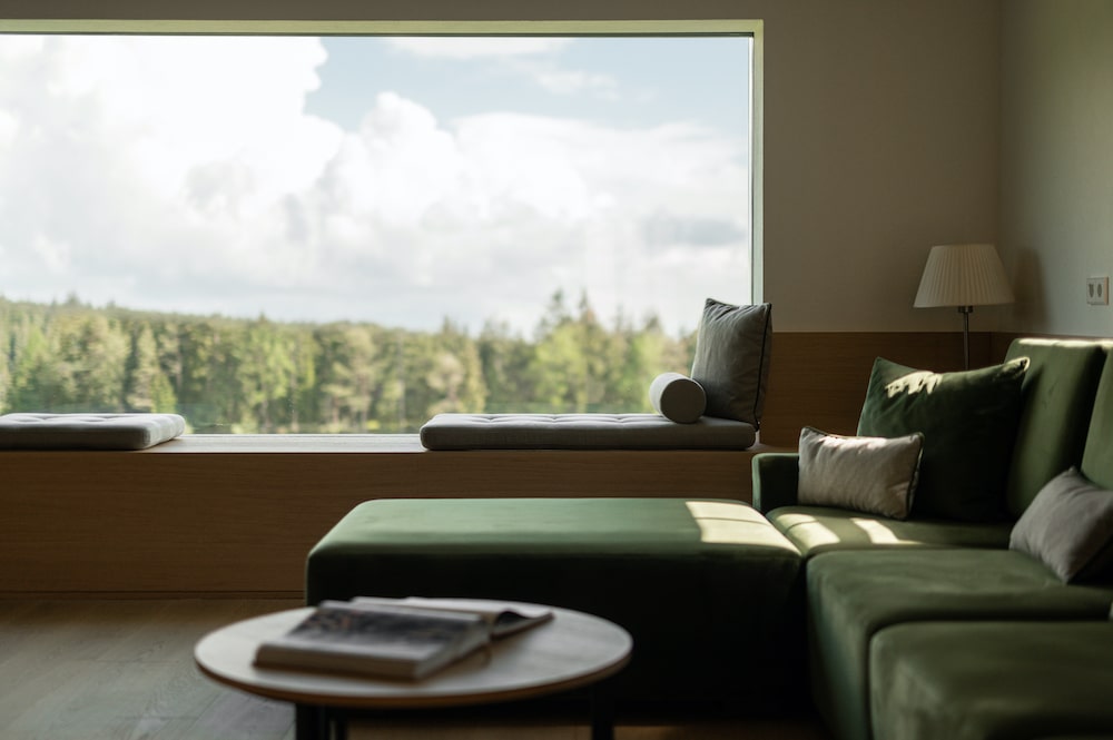 - Boven is er ook een leesruimte met uitzicht op de bossen