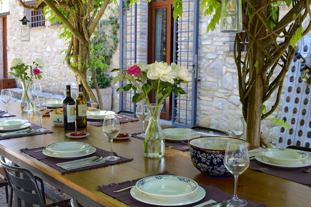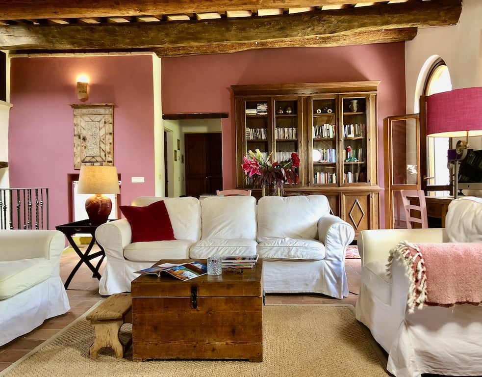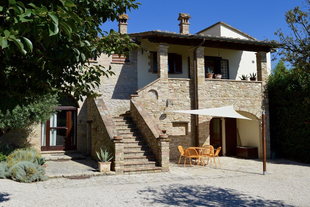 Een huis op een prachtige plek in centraal Umbrie, ongeveer in het midden tussen Perugia en Todi: La Grande Bellezza. Dit prive vakantiehuis biedt veel ruimte buiten en binnen en met de verschillende terrassen en de flexibele indeling door de drie "woonunits" is het uitermate geschikt voor families en vrienden om van elkaars gezelschap te genieten met toch de mogelijkheid tot het opzoeken van privacy. Het geheel is met smaak ingericht: oude balkenplafonds, "cotto" vloeren, antieke meubels, maar ook vintage items & artistieke details. Ook aan het comfort is aandacht besteed, zo is er airconditioning, de bedden zijn allemaal voorzien van nieuwe boxspring matrassen en er is digitale tv.
