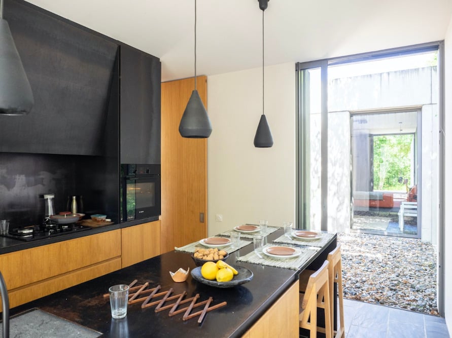 Alle kamers hebben een sterk gevoel van verbondenheid, te beginnen met de woonkamer in het centrum. De grote ruimte staat in verbinding met de slaapkamers, keuken en eethoek in alle vier de hoeken (als een H vorm), evenals het open terras en de weelderige bossen daarachter. Het yogadek en het zwembad zijn heerlijke plekken om te genieten van de zon en het buitenleven.