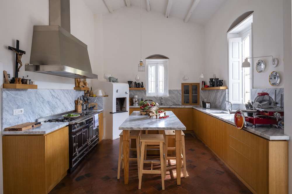 - Semi-professionele keuken; fornuis van Grand Château La Cornue, grill plaat, keukenmachine, kookeiland, ijsmaker, grote koelkast en stijlvol afgewerkt met marmer. Ook is er een Nespresso apparaat. De keuken heeft een deur naar een terras aan de achterkant van het huis