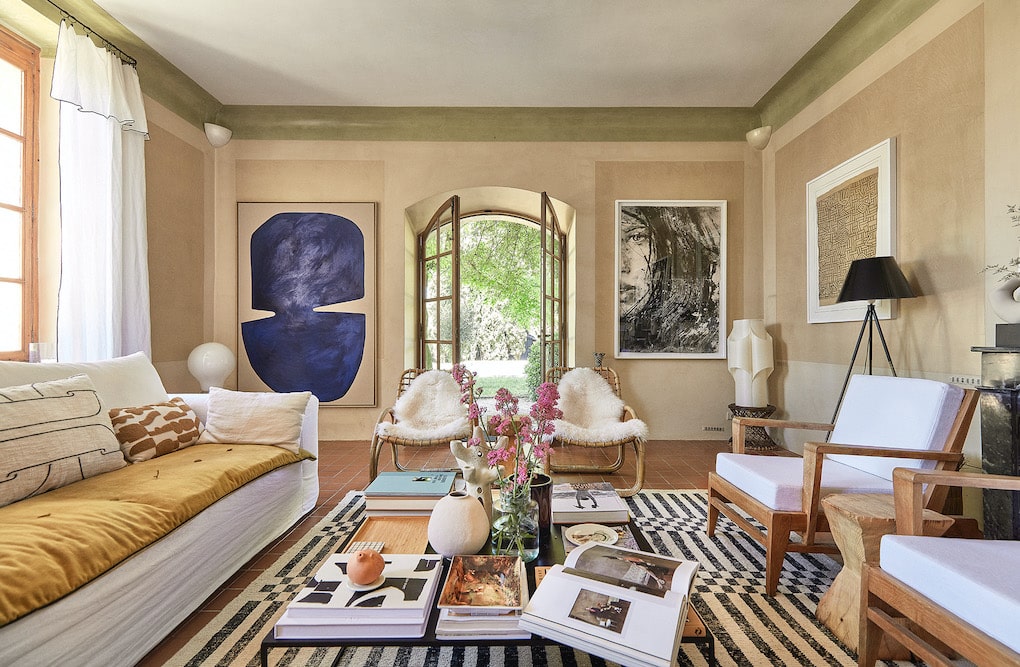 - Prachtige woonruimtes - verbonden met elkaar - voorzien van diverse banken, stoelen, boeken, een open haard en in het oog springende schilderijen