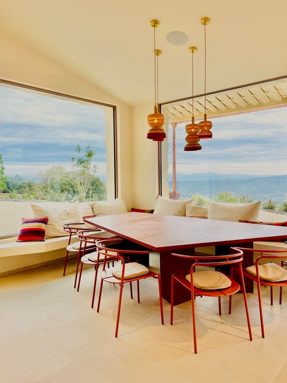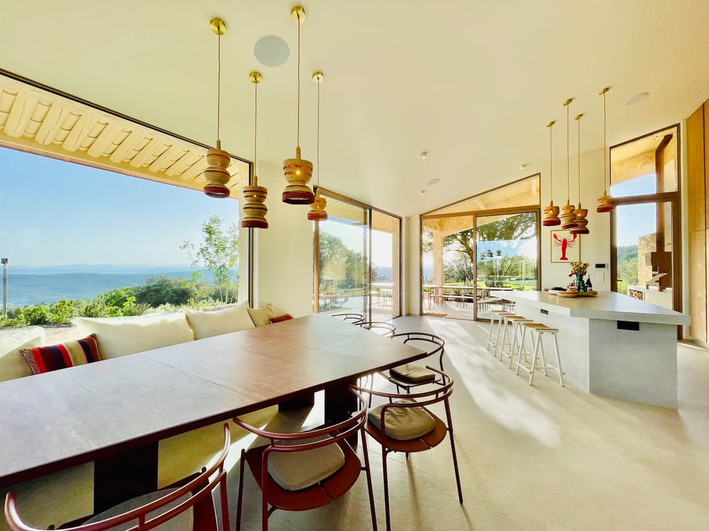 - Gedeeltelijk overdekt terras met lange eettafel (met prachtig uitzicht)