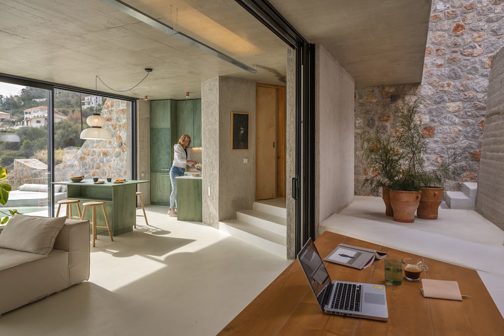 Laspi bestaat uit 2 moderne vakantiehuizen van elk 150m² die beide geschikt zijn voor 6 personen. Elk huis heeft een open woonkamer met een zithoek, eetbar en volledig uitgeruste keuken. Op de bovenverdieping liggen drie tweepersoonsslaapkamers elk met een ensuite badkamer. De woonkamer heeft grote schuifdeuren die voor en achter openen op een terras. Aan de voorkant ligt een prachtig overloop privézwembad en aan de achterkant staat in de schaduw een buiteneettafel.
