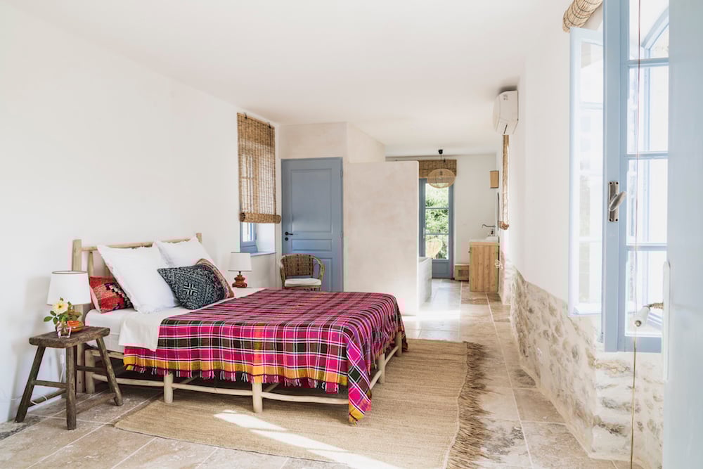 - Twee ruime suites met een tweepersoonsbed (160 x 200 cm) en een badkamer ensuite, uitgerust met ligbad, wastafel en toilet. Deze slaapkamers hebben openslaande deuren die leiden naar het terras op de eerste verdieping.