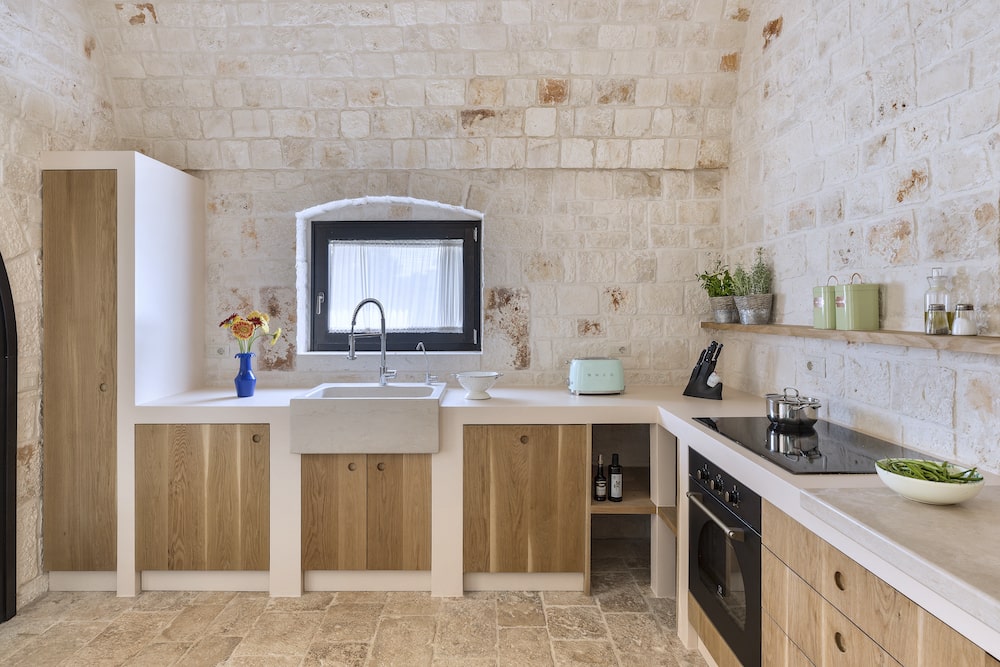 - Er zijn drie badkamers waarvan 1 in de trullo, 1 in de lamia en 1 buiten. Ze hebben allen een douche, toilet, wastafel en biologische verzorgingsproducten van Segretinatura.