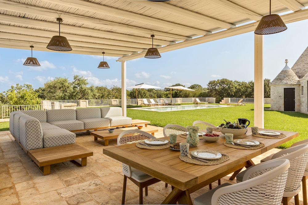 Het terrein waarop de trullo staat is volledig afgesloten en toegankelijk via een elektrische poort. Rondom de trullo vindt u mooie ruimtes om te ontspannen, dineren en spelen: