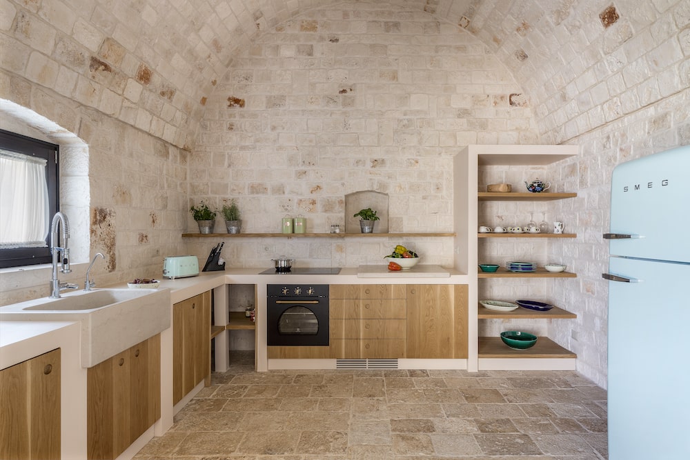 - Er zijn drie slaapkamers, twee in de trullo en één in de lamia