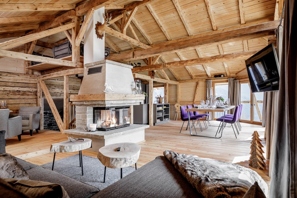 Leni Mountain Chalet is een duurzaam vakantiehuis met drie verdiepingen en een ruime buitenruimte. De slaapkamers bevinden zich allemaal op de begane grond, en de eerste verdieping bestaat uit gemeenschappelijke ruimtes.