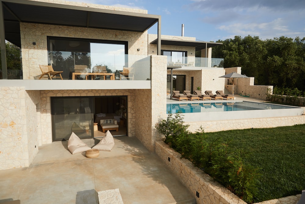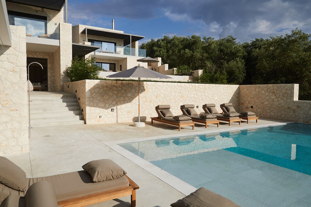 Luxury Stone Houses bestaan uit twee moderne villa’s (240m²) met een adembenemend uitzicht over zee. De villa’s zijn hoogwaardig uitgerust met luxe faciliteiten inclusief airconditioning. Elk huis heeft een mooie open woonkamer met een open haard, een volledig uitgeruste moderne keuken, 4 ruime slaapkamers met elk een state-of-the-art badkamer. De vijfde badkamer is een extra badkamer en bevindt zich in het woongedeelte. In twee kamers vindt u een slaapbank. Buiten ligt een privé overloopzwembad (5x10m) met luxe ligbedden, een terras met een buitenkeuken en eettafel en een balkon met zitjes die u bereikt vanuit de living.