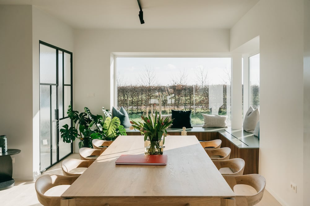 - De schuifdeuren in de woonkamer openen op het terras