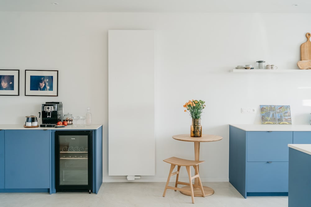 - De keuken - die in open verbinding staat met de woonkamer - beschikt over alle moderne apparatuur en een keukeneiland. Zo vindt u er een oven, magnetron, inductiekookplaat, koelkast met diepvries, vaatwasser, koffiezetapparaat met bonen (Delonghi), filterkoffiezetapparaat (Moccamaster), waterkoker, broodrooster en een wijnkoelkast.