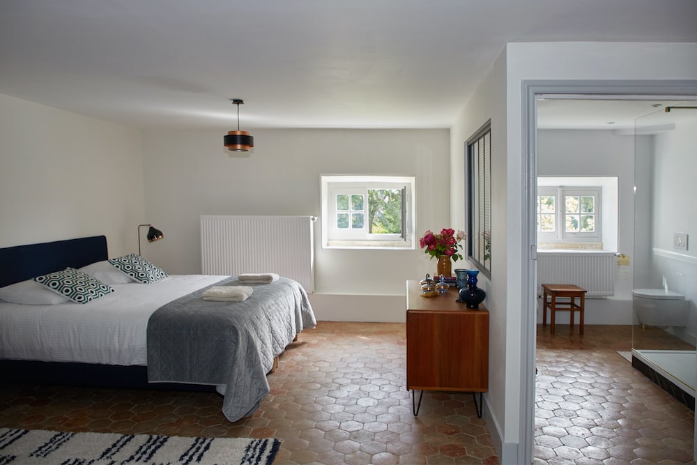 - Verdeeld over de eerste en tweede verdieping liggen 7 ruime slaapkamers (twee met twee enkele bedden, en vijf met een tweepersoonsbed). Zes slaapkamers hebben een moderne ensuite badkamer voorzien van een inloopdouche of douche/badcombinatie.