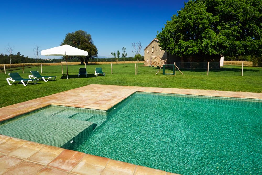 - Het zwembad wordt verlicht in de avond. Dit geeft een sprookjesachtige sfeer door de opgelichte groene mozaïek steentjes