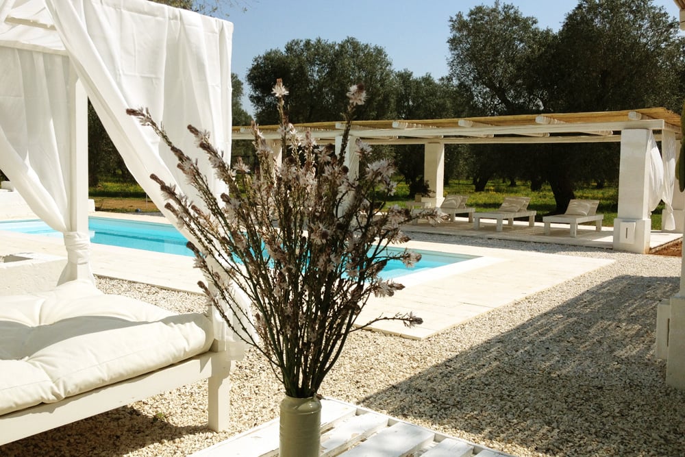 Net buiten Maruggio, een dorpje in de hak van de laars van Italie, toverden de eigenaren Francesco en Lara een vervallen landhuis van ruim 200 jaar oud om tot een zonovergoten vakantiewoning bestaande uit drie appartementen.