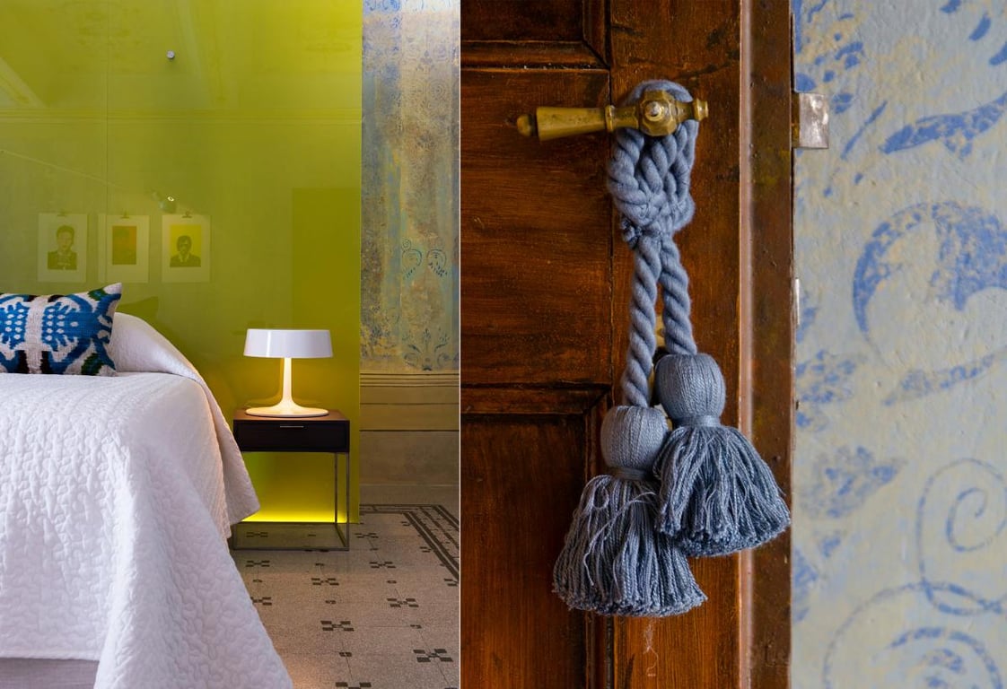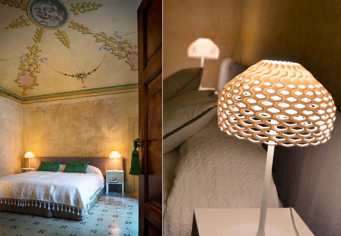Drie luxe, ruime suites met ieder een prive badkamer..mooie fresco's op de muren en plafonds, terrazzo tegelvloeren. Twee van de suites hebben ook een bank, welke kan fungeren als een eenpersoonsbed.