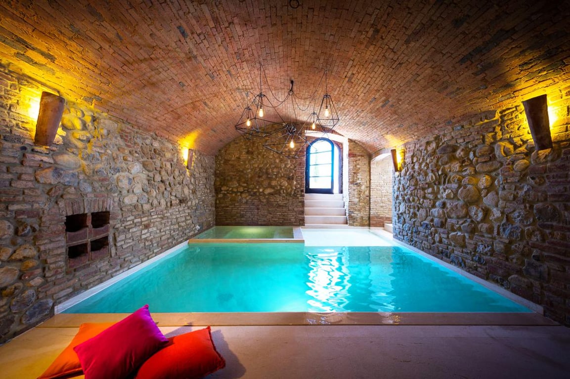 De oude stallen van het gebouw zijn getransformeerd van donkere en muffe kamers in een frisse prive spa met marmeren zwembad en jacuzzi, kitchenette met koelkast, indoor en outdoor lounges en een extra badkamer met douche. De spa is voorzien van een natuurstenen vloer met vloerverwarming waardoor deze ruimte het gehele jaar door te gebruiken is. Bij mooi weer kunt u buiten bij de spa op het terras zitten.