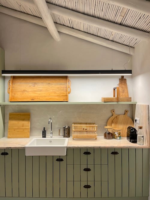 - Woonkeuken met een eettafel en alle moderne apparatuur waaronder een inductiekookplaat, vaatwasser, koel/vrieskast, oven, Espresso machine, blender, waterkoker en broodrooster.