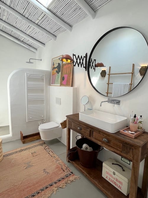 - Twee badkamers met inloopdouche, wastafel, toilet en verzorgingsproducten van het Portugese merk Castelbel