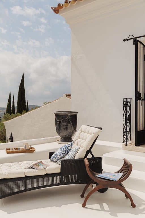 Rondom de villa zijn meerdere terrassen, voldoende plekken om afhankelijk van het tijdstip te genieten van zon of juist schaduw.