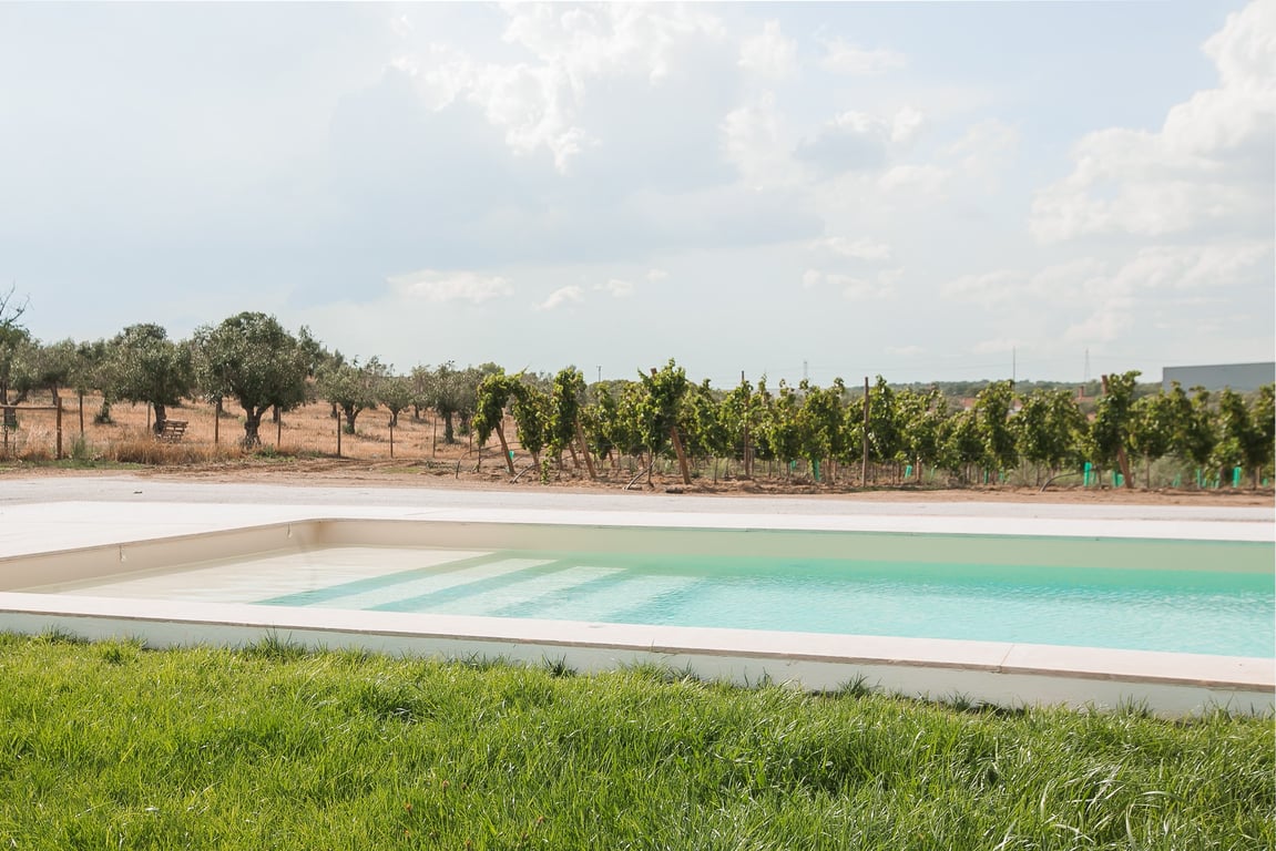 - Het huis heeft een grote buitenruimte met een gazon en een zwembad met ligbedden. Al deze ruimtes kijken uit over de olijf- en wijngaarden op het terrein