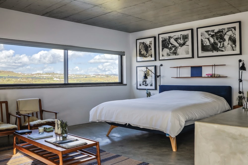 Verscholen tussen olijfgaarden en glooiende heuvels, net buiten het charmante Estremoz, ligt Monte dos Santos - een zeldzaam architecturaal pareltje waar design, kunst en rust elkaar ontmoeten. De villa voor 14 personen wordt gekenmerkt door betonnen vloeren, grote ramen, strakke lijnen en verrassende details. Hier draait alles om balans: tussen robuust en verfijnd, tussen binnen en buiten, tussen eenvoud en elegantie.