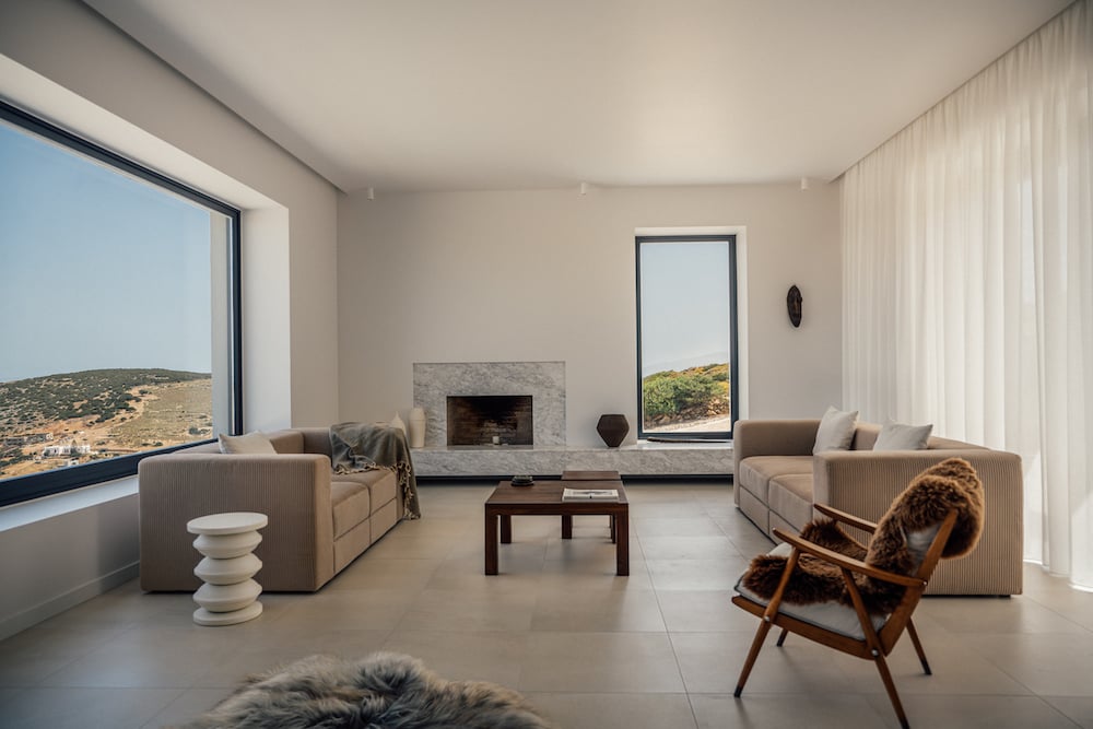 Moonhouse is een nieuwgebouwde villa, gelegen op een panoramische plek vol rust en privacy. De accommodatie bestaat uit een hoofdgebouw met drie slaapkamers en twee bijgebouwen, voor respectievelijk 2 en 4 personen, waarvan een met een eigen woonkamer met kitchenette. Vloerverwarming en -koeling is aanwezig in het hoofdhuis, de gasthuizen beschikken over airconditioning. Buiten geniet u van de rust en de uitzichten op zee op het terras of bij het lager gelegen zoutwater zwembad.
