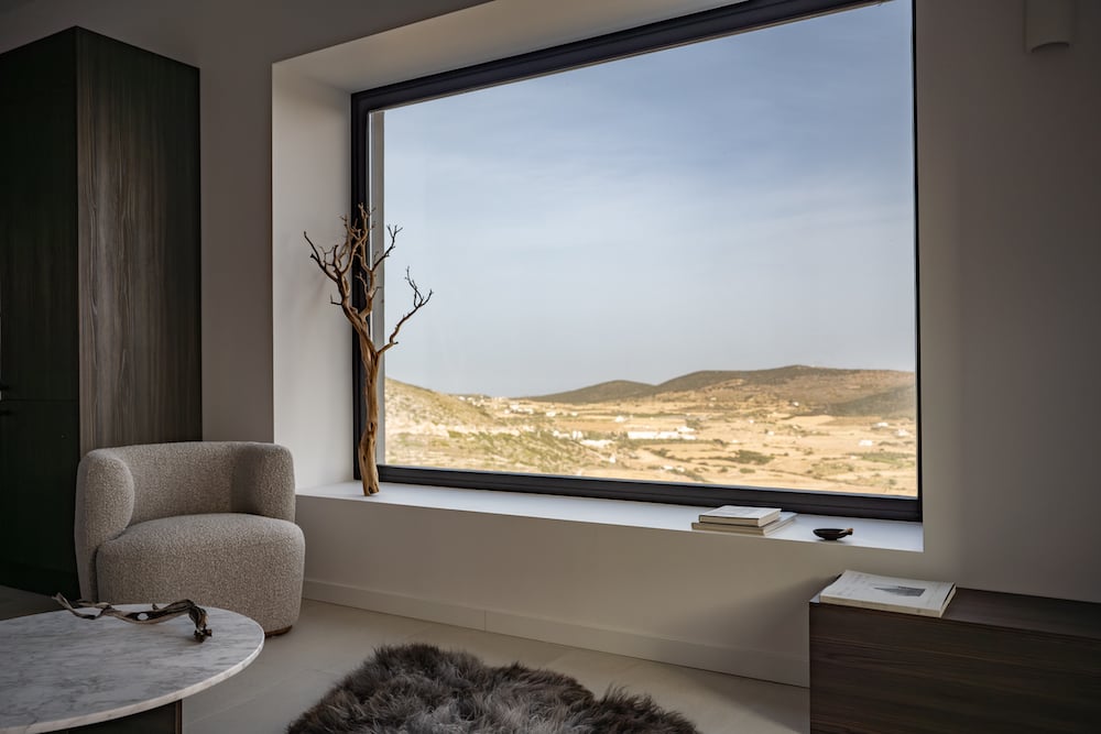 - Een tweepersoonsslaapkamer met zeezicht en een kleine tweepersoonsslaapkamer met zicht op de bergen
