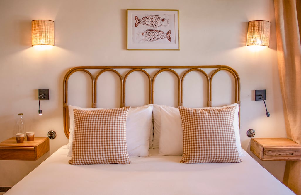 De 22 kamers – waaronder vier familiekamers en twee exclusieve suites – zijn ingericht in vier stijlen: van de mediterrane Nomad-kamers met bogen en terracotta vloeren tot de frisse Malibu-suites met pasteltinten. Overal ziet u natuurlijke materialen, rustgevende kleuren en handgemaakte details. De sfeer is verfijnd maar ontspannen – een plek om echt tot rust te komen.
