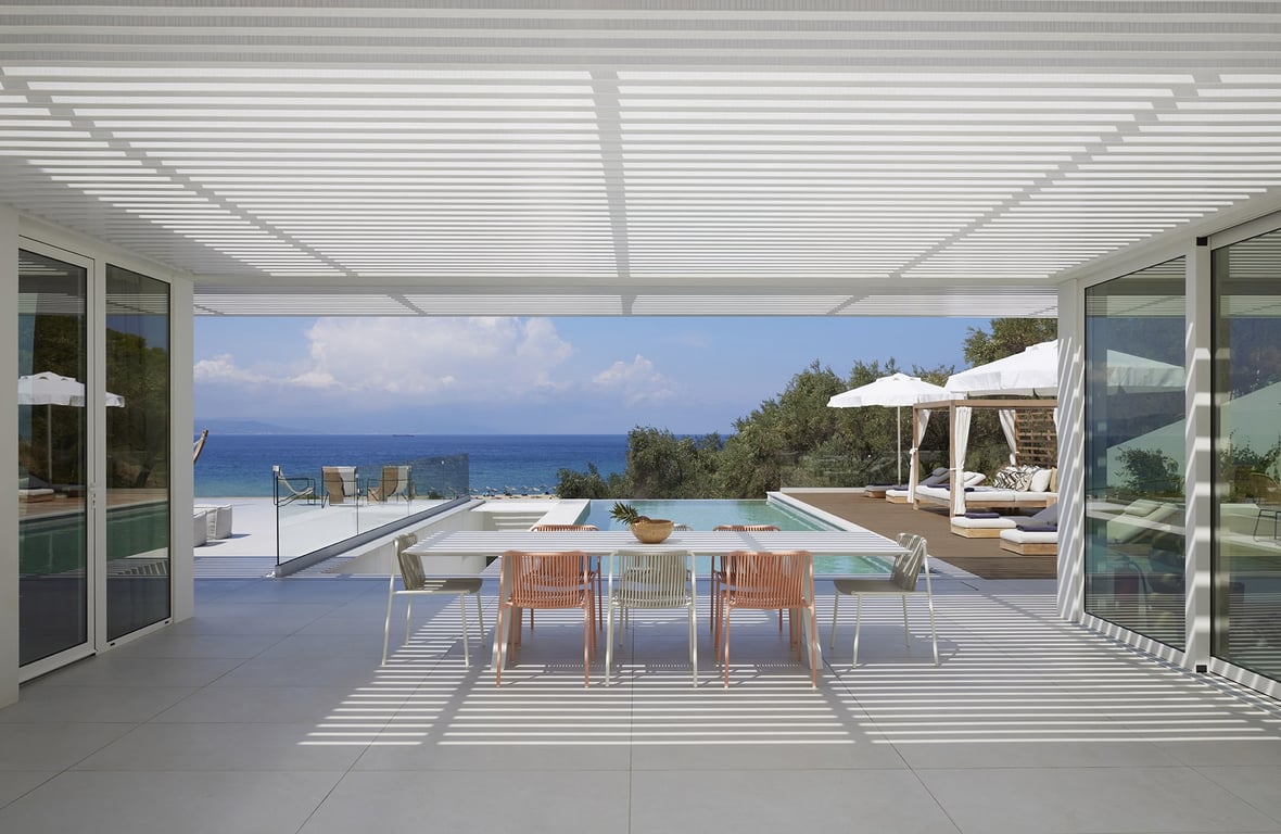 - De gezamenlijke leefruimtes bevinden zich op de begane grond. Hier kunt u de grote schuifdeuren openen voor het ultieme binnen-buiten gevoel!