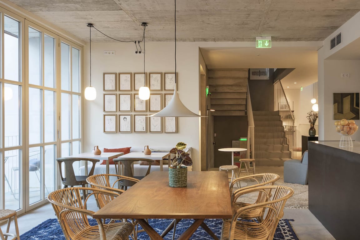 - Lounge/ontbijt-, lees-, werkruimte met overdag een drank menu en kleine hapjes en sandwiches