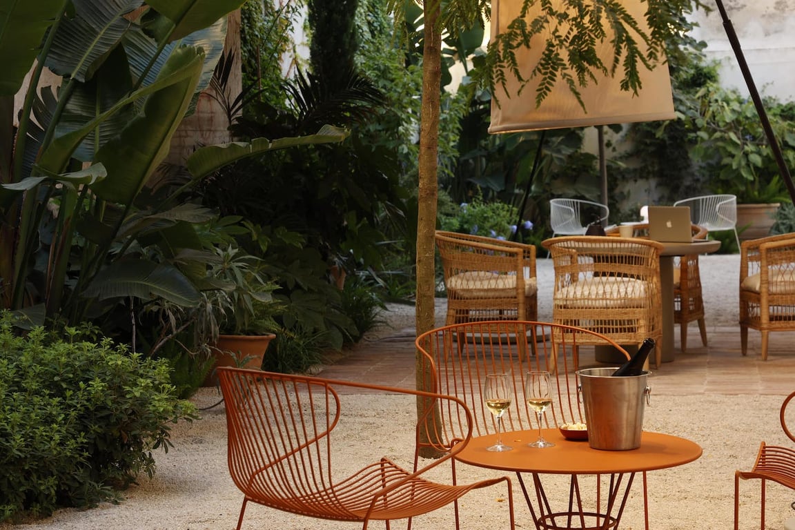 - Botanische tuin/binnenplaats met zitjes