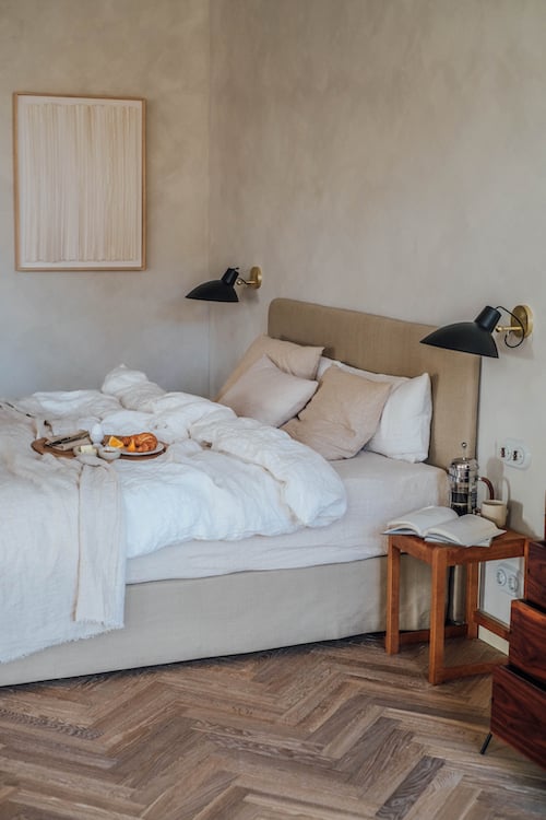 St. Oak ligt in een met liefde gerestaureerd herenhuis uit 1912 aan het marktplein van Kyritz, op ongeveer anderhalf uur ten noorden van Berlijn. Binnen komt het originele karakter—hoge plafonds, eiken deuren, historische tegels—samen met een rustige, eigentijdse esthetiek. Vanuit de zuidgerichte kamers en het balkon kijkt u uit op een eeuwenoude eik (de naamgever van het huis), terwijl aan de achterzijde een verborgen tuin zich ontvouwt als een kleine, wereld van klimop en hortensia’s, lavendel en oregano, met pruimen-, kweepeer- en lindebomen. Het is een ontspannen uitvalsbasis voor langzame weekends of langere verblijven, met een zwemmeer op circa 15 minuten fietsen en eenvoudige treinverbindingen naar Berlijn.