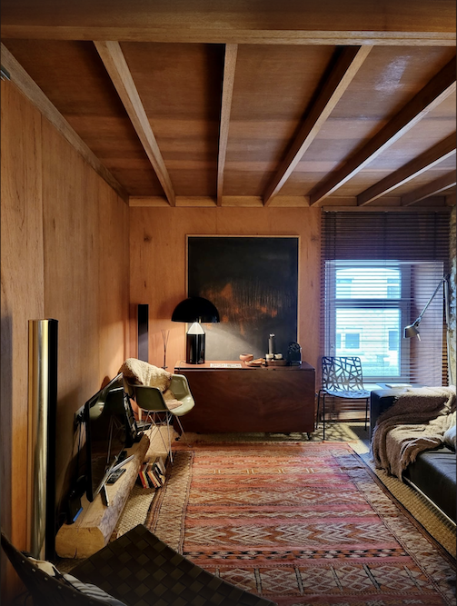 De suite is gelegen op de eerste verdieping van het kunstatelier en is uitgerust met alle comfort.