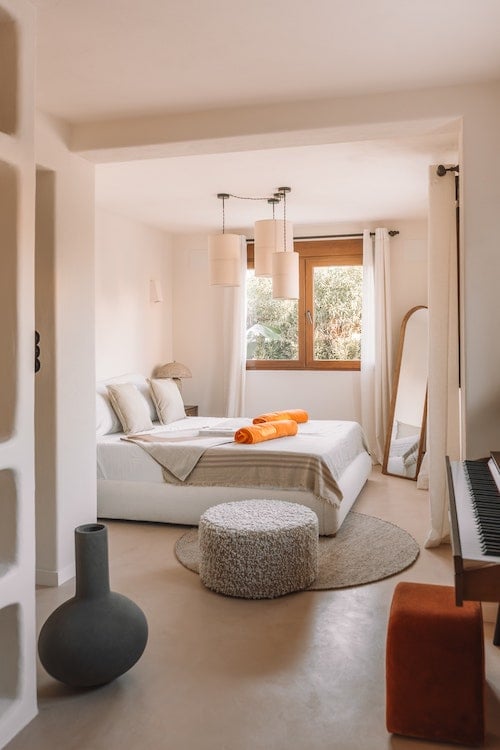 Op de begane grond bevindt zich een keuken met kookeiland en tafel voor 4 personen, SMEG apparatuur en luxe servies van Costa Nova. Aansluitend is een eetkamer en een kleine woonkamer met een bank en smart TV. Op deze verdieping ligt een suite met een tweepersoonsbed (160x200cm) en en-suite badkamer en een ruimte met een piano. De tweede slaapkamer heeft een tweepersoonsbed (160x200cm) en een en-suite badkamer met een ligbad.