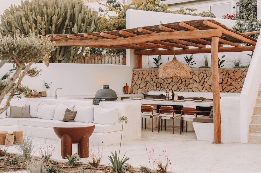 - Buitenkeuken met de nodige faciliteiten zoals een Bastard Urban BBQ en gootsteen, naast een overdekte eetruimte.