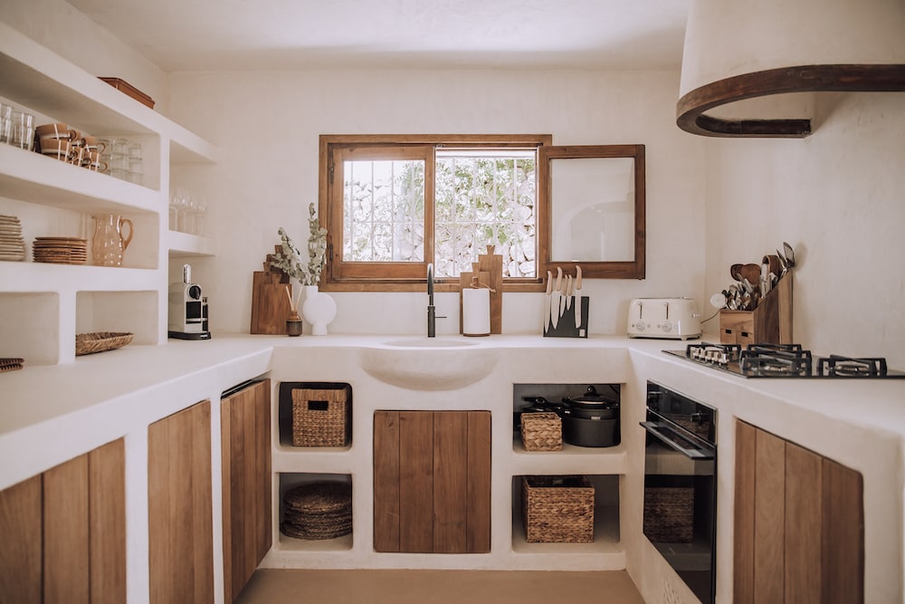 - Open keuken, volledig ingericht met keukenapparatuur van SMEG, waaronder: een koelkast met vriesvak, inductiekookplaat, oven, koffiezetapparaat, waterkoker, een waterkraan met gefilterd drinkwater, broodrooster, wasmachine en verdere kookbenodigdheden.
