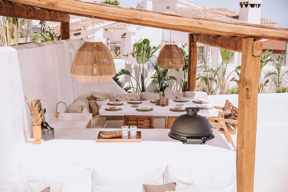 - De buitenkeuken is uitgerust met: een koelkast, wasbak en kraan, kookbenodigdheden en een grote kamado grill.