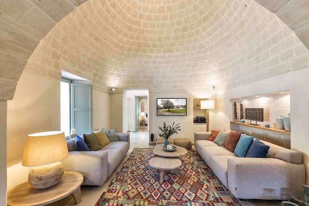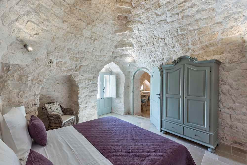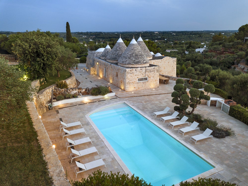 De prachtig gerenoveerde Trulli di Mandorle bestaat uit een oude lamia en drie trulli, waar de 5 slaapkamers en het leefgedeelte zijn ondergebracht. Twee slaapkamers bevinden zich op een lagere verdieping in een apart gedeelte dat alleen via buiten te bereiken is. De vakantiewoning wordt omringd door een weelderige tuin met typische Mediterrane vegetatie waar u zeer aantrekkelijke buitenruimtes vindt en een mooi zwembad. Alle slaapkamers zijn voorzien van airco.