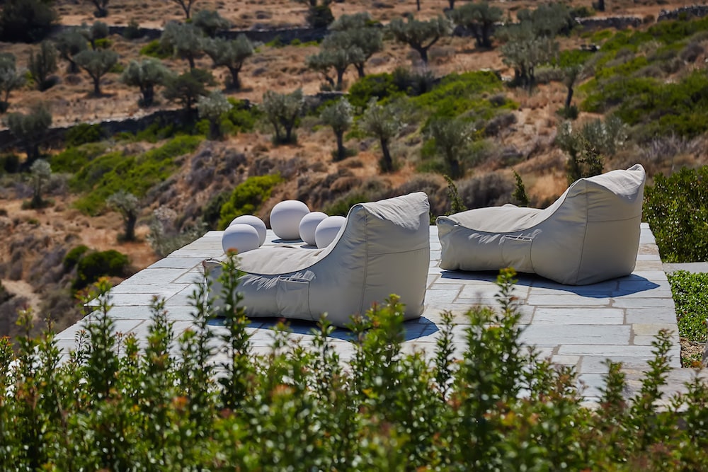 - Een paar treden lager dan het zwembad ligt nog een panoramisch terras met heerlijke lounge bedden