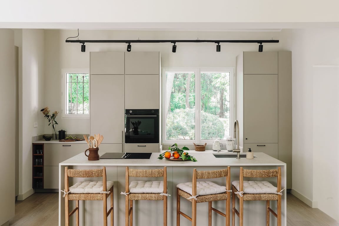 Binnen is Villa Collinette een toevluchtsoord van comfort en stijl. De ruime interieurs worden overspoeld met natuurlijk licht, terwijl grote ramen het omliggende landschap omlijsten en het buitengevoel naadloos het interieur binnenbrengen. De villa biedt plaats aan maximaal 6 personen, met drie prachtig ingerichte slaapkamers, elk voorzien van een eigen en-suite badkamer en een knusse, rustieke open haard. De open keuken en woonruimte nodigen uit tot ontspanning – of u nu een maaltijd bereidt aan het grote keukeneiland, samen dineert met dierbaren, of zich ontspant in de weelderige lounge. Het is een ruimte die zowel grandioos als uitnodigend aanvoelt, perfect voor lange avonden samen.