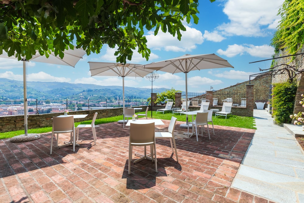 - Suite Castello is een appartement (70 m2) op de bovenste verdieping van het gebouw. De suite heeft twee vertrekken: een woonkamer met open haard en een slaapkamer. De suite heeft twee privé terrassen en een prachtig uitzicht. En-suite badkamer met vrijstaand bad, douche, toilet en wastafel.