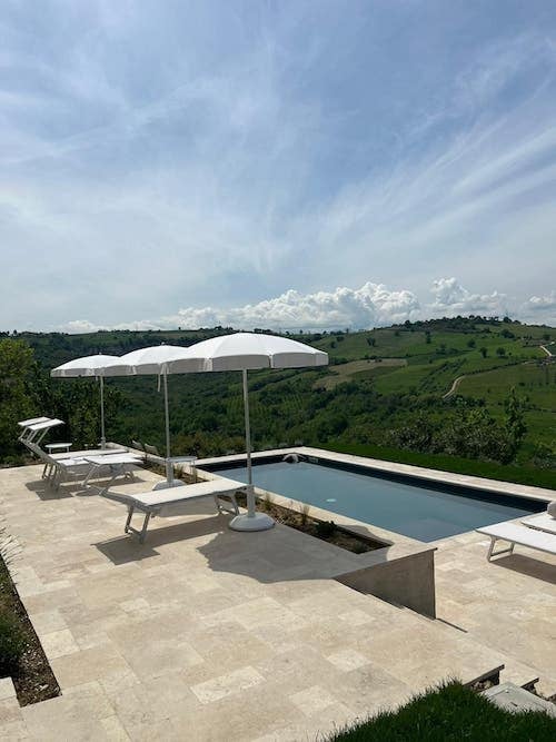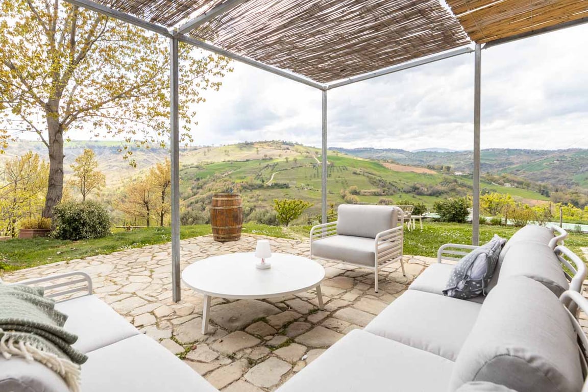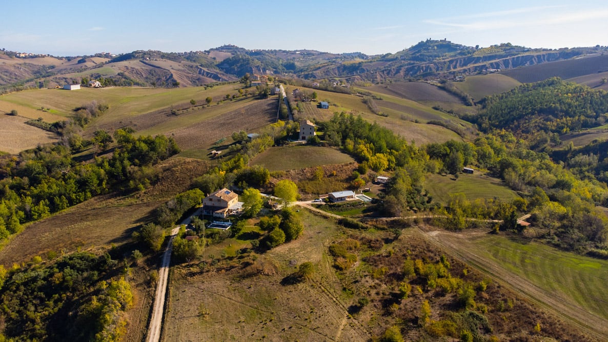 Vanuit het huis, vanaf de twee terrassen en vanuit het zwembad heeft u een prachtig uitzicht over de glooiende heuvels van Le Marche. Wanneer u iets hoger aan de weg staat heeft u ook nog uitzicht op het Sibillini Gebergte. En met geluk ziet u vanaf het huis tot mei nog net een sneeuwtopje daarvan.