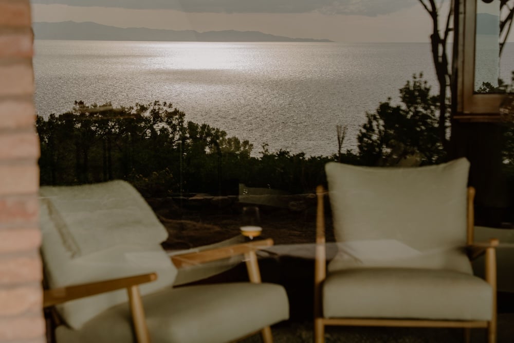 - Slaapkamer met een tweepersoonsbed (160 cm x 200 cm) en een privéterras met adembenemend uitzicht op zee.