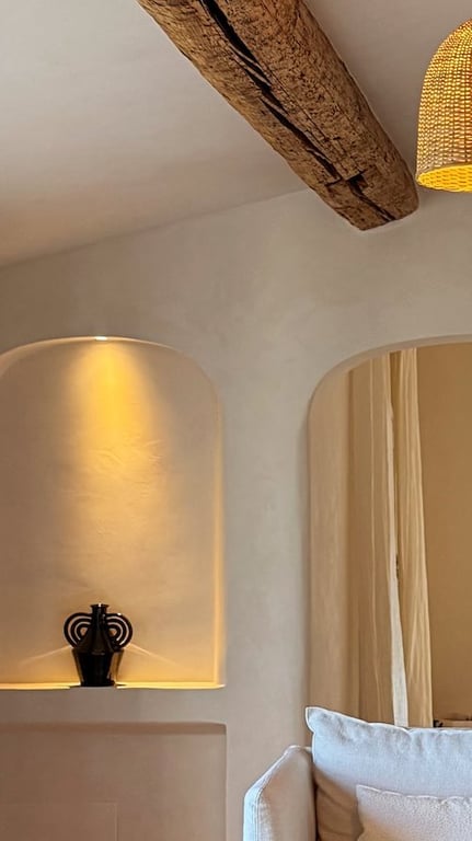 De villa biedt comfortabel plaats aan maximaal acht personen, verdeeld over vier individueel ingerichte slaapkamers. Het interieur is rustig en tijdloos, met een doordachte combinatie van zachte materialen, vintage accenten en zorgvuldig gekozen designstukken die voor karakter zorgen. Op de bovenverdieping vindt u een open keuken met royaal kookeiland, een knusse woonkamer en twee slaapkamers, waarvan één met uitzicht op zee. Beneden bevinden zich nog twee slaapkamers, met uitzicht op het groen van de tuin en het zwembad. Het geheel voelt evenwichtig en ontspannen aan—een plek waar iedereen tot rust kan komen.