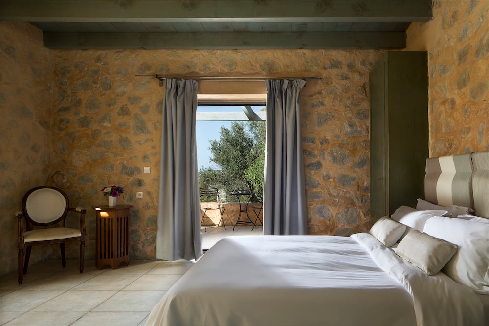 Aan de achterzijde van de woonkamer stijgen enkele treden naar een doorgang die leidt naar het slaapgedeelte van de villa. De eerste slaapkamer heeft een ensuite badkamer met een douche, toilet en een wastafel. Openslaande deuren bieden toegang tot een overdekt terras. De tweede slaapkamer is een kamer met 2 eenpersoonsbedden en een aparte badkamer met toilet, wastafel en een douche. De derde, master slaapkamer heeft een tweepersoonsbed met aan weerszijden fraaie inbouwkasten. De kamer heeft een groot raam met een prachtig uitzicht over het zwembad en ook direct toegang tot een patio. Scharnierende dubbele deuren open om de en-suite badkamer te onthullen, compleet met jacuzzi. Vanuit de badkamer, leidt een glazen schuifdeur naar een buiten douche, volledig afgesloten maar zonder dak, dus ‘s avonds geniet u van de heldere sterrenhemel!