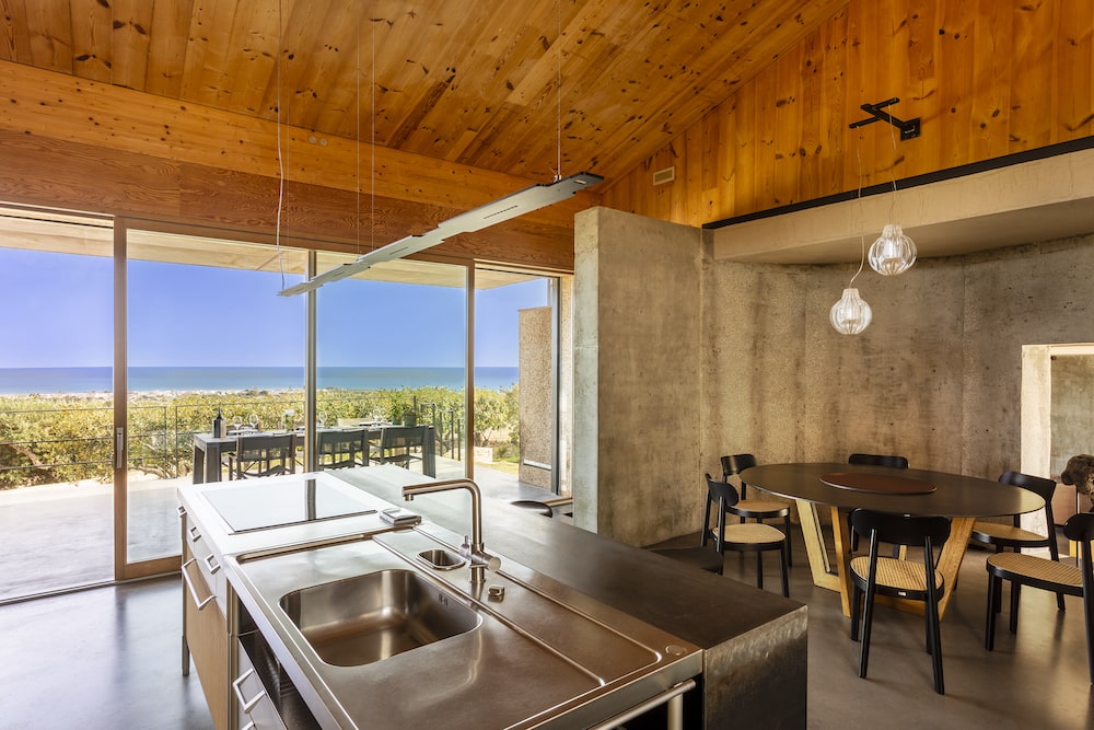 - Vanuit de keuken bieden grote schuifdeuren toegang tot het panoramisch terras.