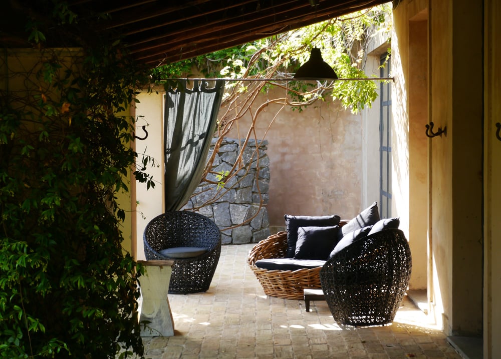 - ruime tuin met verschillende zitjes